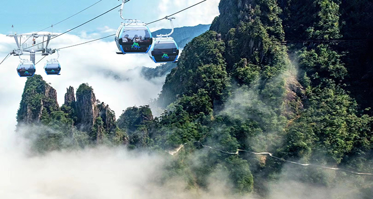 乘坐奧地利進(jìn)口的五指峰索道,全長(zhǎng) 3.7 公里,是全國(guó)單線(xiàn)最長(zhǎng)的索道,極限垂直高差達(dá) 1000 米。每小時(shí)客單向運(yùn)量最多 2000 人,運(yùn)行速度最快達(dá) 6 米 / 秒,最快單向運(yùn)行時(shí)間僅 11 分鐘。乘坐索道,可近觀五指峰,遠(yuǎn)眺天臺(tái)峰,仿佛騰云駕霧,穿梭于仙境之中 。