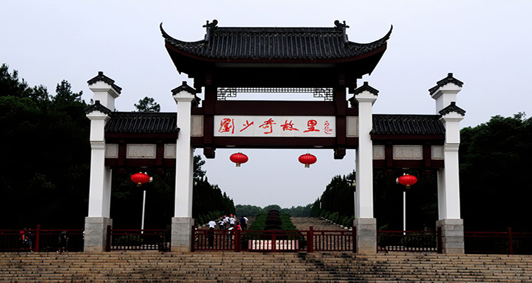 1988年11月24日,劉少奇誕辰90周年之際落成的劉少奇銅像廣場占地面積8000多平方米(包括踏步)。兩邊山頭青松傲立,綠樹掩映。廣場正前方有一個平臺,平臺中央矗立著劉少奇銅像。劉少奇銅像由中華全國總工會捐建,著名雕塑大師劉開渠及弟子程允賢精心制作。銅像加底座共高7.1米,其中像高3.0米,座高4.1米。這個數(shù)字包含著兩層含義:第一,“七一”是黨的生日,劉少奇同志一生致力于黨的建設(shè),為黨和人民的事業(yè)付出了畢生的精力,是黨和國家的卓越領(lǐng)導(dǎo)人。第二,劉少奇同志享年71歲。銅像座西北朝東南,面部神情威嚴(yán)中帶著微笑,滿懷滄桑地眺望遠(yuǎn)方,再現(xiàn)了作為黨和國家主要領(lǐng)導(dǎo)人之一的劉少奇風(fēng)塵仆仆、日理萬機的光輝形象,使人油然而生一種敬意和親切感。