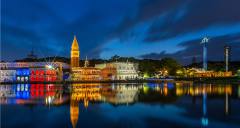 愛情谷,這里可以看到瑞士大鐘塔和歐洲小鎮(zhèn),處處都是典型的歐式建筑。右邊的丹麥國王加冕城堡,是個明星夢工廠和恐怖城。與它相鄰的那座綠頂紅墻的建筑是荷蘭海牙國際法院,內(nèi)部是一個世界蝴蝶博覽館,在那里可以免費欣賞到各種精美的蝴蝶標(biāo)本。左邊的湖水叫天鵝湖,取名于俄國作曲家柴可夫斯基的同名舞劇《天鵝湖》,湖邊那三座高大的風(fēng)車是荷蘭的象征。右邊地上的泉眼是旱噴泉,在旱噴泉上方的建筑是意大利圣三山教堂,它與原型比例是1:1.5,每年都有許多對新人在這里舉行西式婚禮。這里還有一個歐洲小鎮(zhèn)仿建的是德國和法國民居,比例為1:1的歐式風(fēng)格,被開放成商場和服裝出租點。
