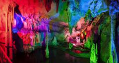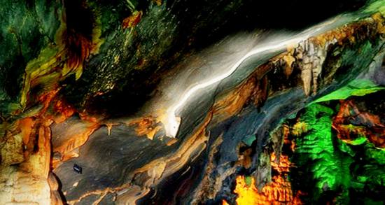 洞內(nèi)寬大幽深,洞中有洞,樓上藏樓,鐘乳石千姿百態(tài)、三步一景、五步一閣,萬千景象,令人嘆為觀止,有南宮、北宮、瑤池仙境、海底世界等四大景區(qū)、10多個廳堂,100多個景點(diǎn)。